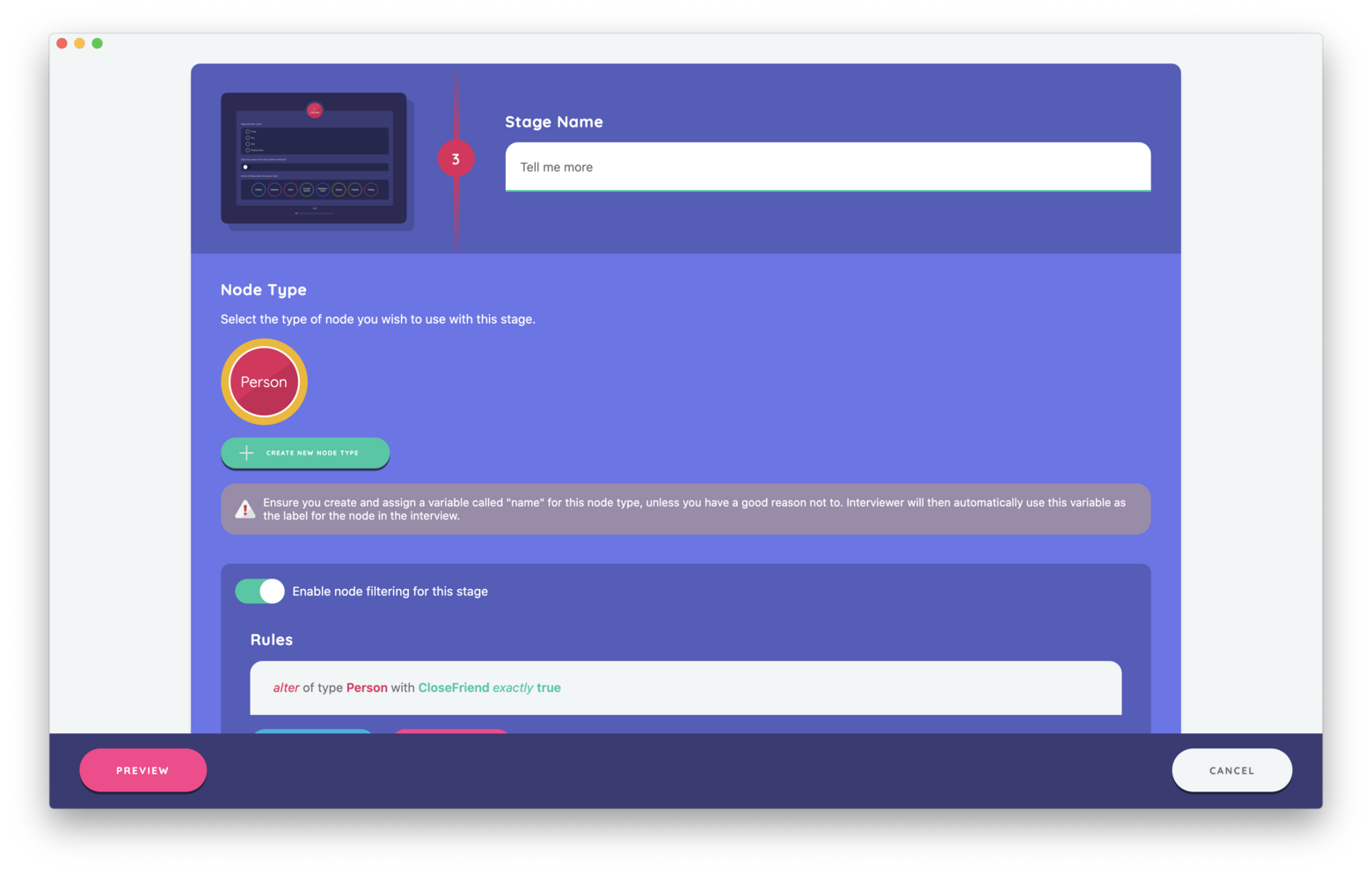 Each node will be assigned variables using a configurable form.