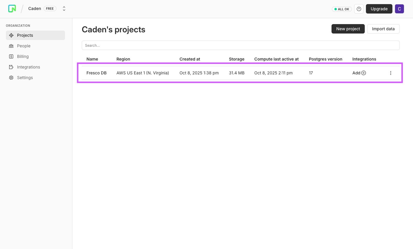 Navigate to your Neon dashboard and select your project.
